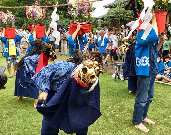一般には「篠籠田の三匹獅子舞」と呼ばれ、毎年8月16日に西光院境内で行われます。獅子舞の始まりは、徳川5代将軍綱吉の頃の元禄時代といわれています。篠籠田の獅子舞は、龍神をかたどる「龍頭の獅子」です。祖先の霊をなぐさめ、五穀豊穣と家内安全を祈願します。