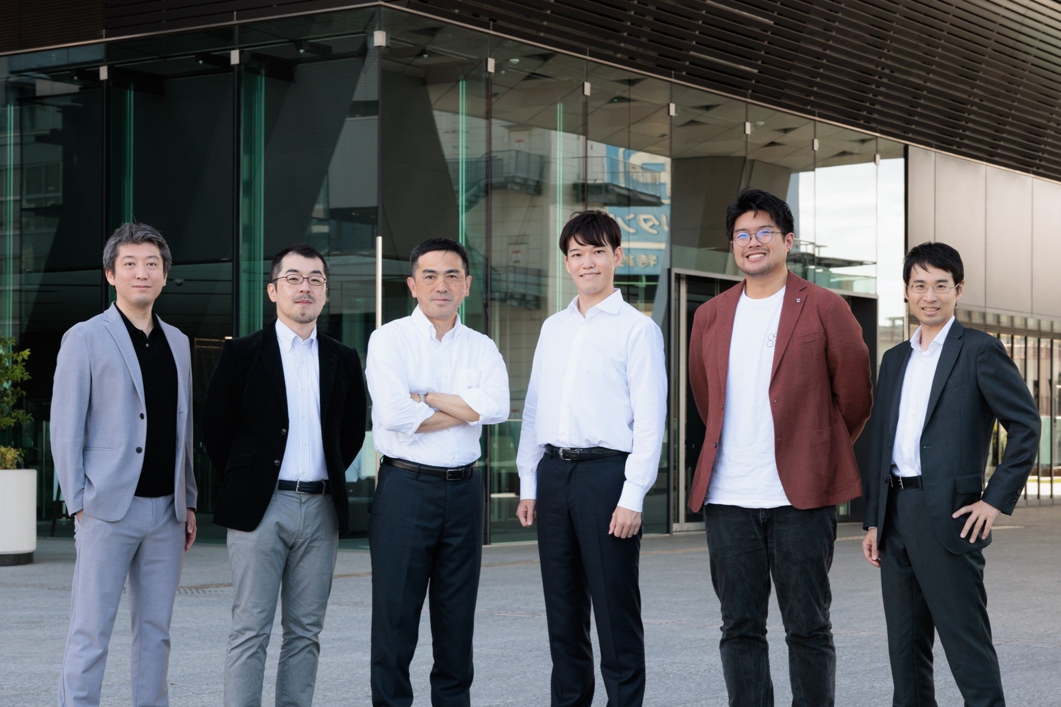 (写真左から)取締役 平岡 卓爾、取締役 米澤 英宏、取締役 古澤 明、代表取締役 CEO 高瀬 寛、取締役 CTO アサバナント・ワリット、取締役 COO 岩田 訓明