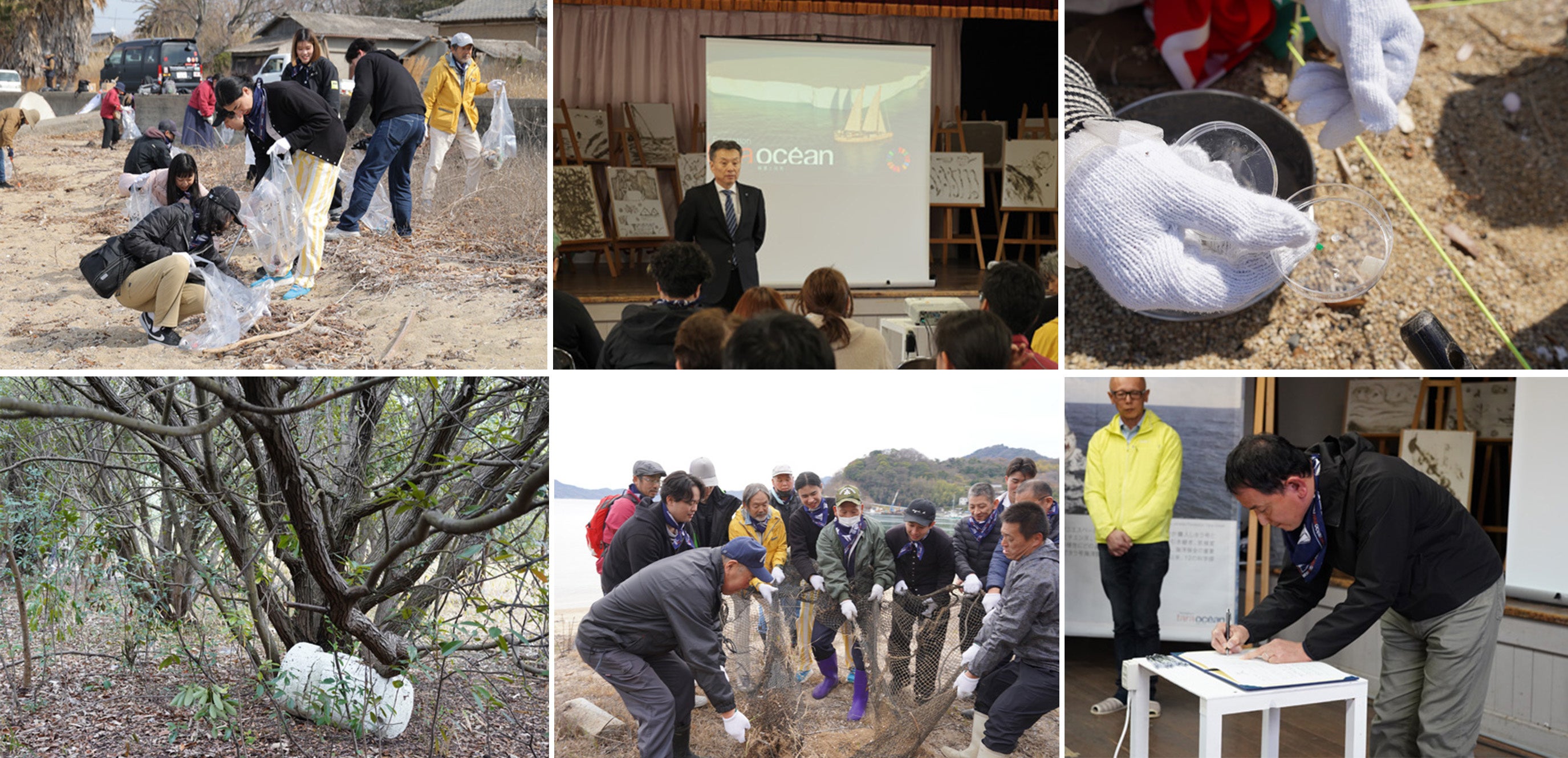 三豊市や漁業関係者、市民なども参加し産官民が連携した継続的な取り組みへと広がっています。さらに、海洋プラスチックごみゼロの実現に向けた「共同宣言書」の署名・発行や 各企業の取り組みを共有する場も設けました。