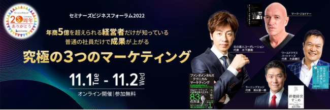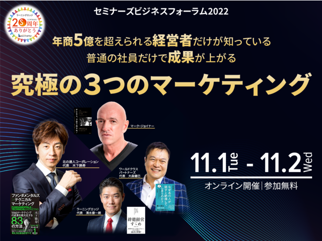 11月1〜2日開催 「究極の3つのマーケティング」セミナーズビジネスフォーラム 2022