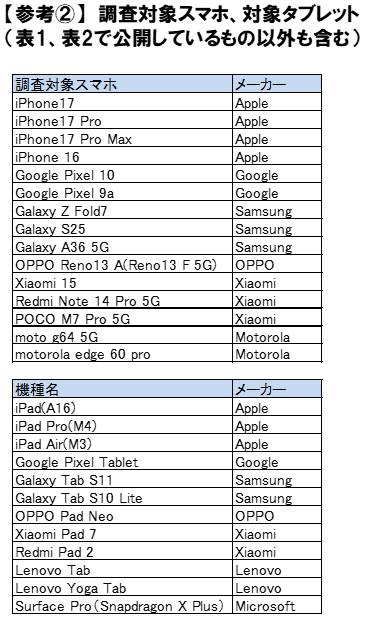 この調査では、スマートフォンとタブレットの価格の実態を調査した。対象は、2025年9月時点の主な端末のメーカー直販価格。調査対象国は、G20構成国(日本、米国、英国、フランス、ドイツ、イタリア、カナダ、アルゼンチン、オーストラリア、ブラジル、中国、インド、インドネシア、メキシコ、韓国、ロシア、サウジアラビア、南アフリカ共和国、トルコ)としている。