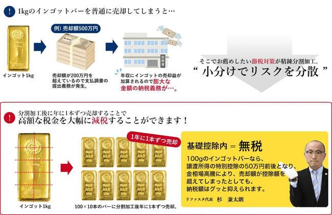 今回は節税効果バツグンのリファスタ精錬分割加工サービス、そして今月からスタートした注目の『50g精錬分割加工』をご紹介いたします!