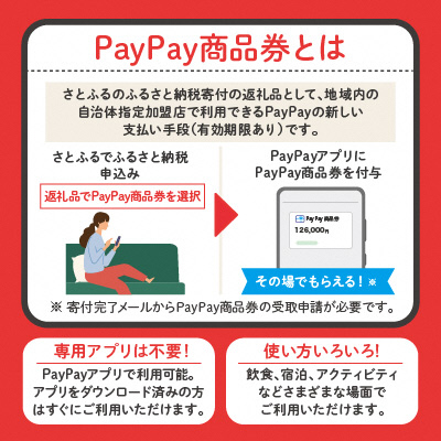 ご利用に当たっては、事前に寄附することなく、伊東市へ訪れた際にふるさと納税ポータルサイト「さとふる」を通じて寄附することで、PayPayアプリで商品券を受け取ることが可能です。