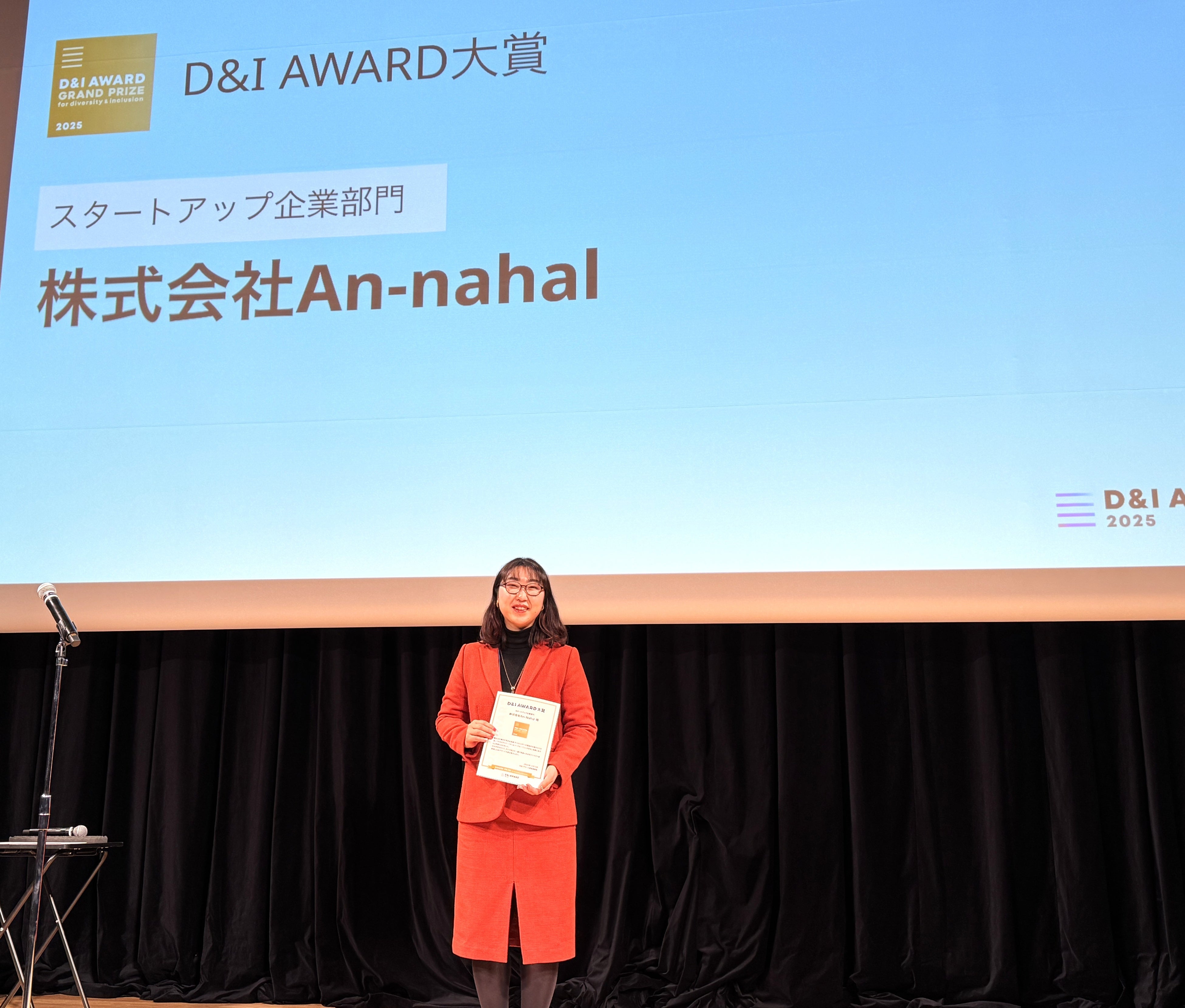 株式会社An-Nahal(本社:神奈川県横浜市、代表取締役:品川 優)は、国内最大級のダイバーシティ推進アワード「D&I Award 2025」(主催:株式会社JobRainbow)において、スタートアップ企業部門「D&I AWARD大賞」を受賞しました。また同時に、最高位の「ベストワークプレイス」に認定されました。