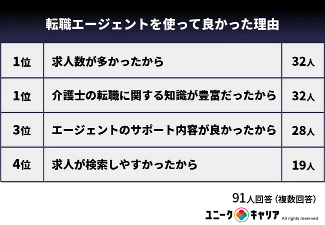 ・介護士転職エージェントを使う良さ1位は「求人数の多さ」