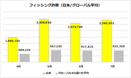 フィッシング詐欺は日本が最多で、依然として増加傾向 サポート詐欺は7月に一時減少
