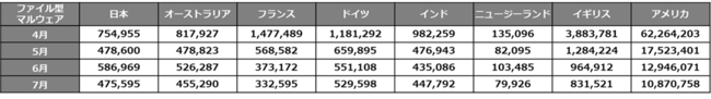 ■ファイル形式で送付されるマルウェアは、5-7月はグローバル全体で減少傾向に。
