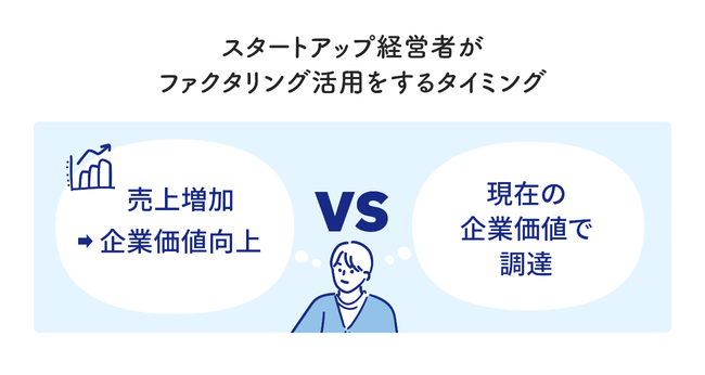スタートアップ/ベンチャー企業でファクタリングを活用できる場面は大きく2つ、(1)増加運転資金への緊急対応で売上成長スピードを重視する際と(2)企業価値の最大化のためのファクタリングを活用する場面が挙げられます。