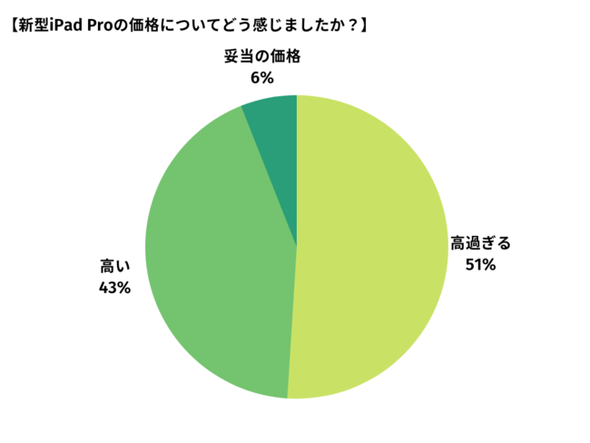 新型iPad Proが高い・高すぎると感じた人は、94%であることがわかりました。