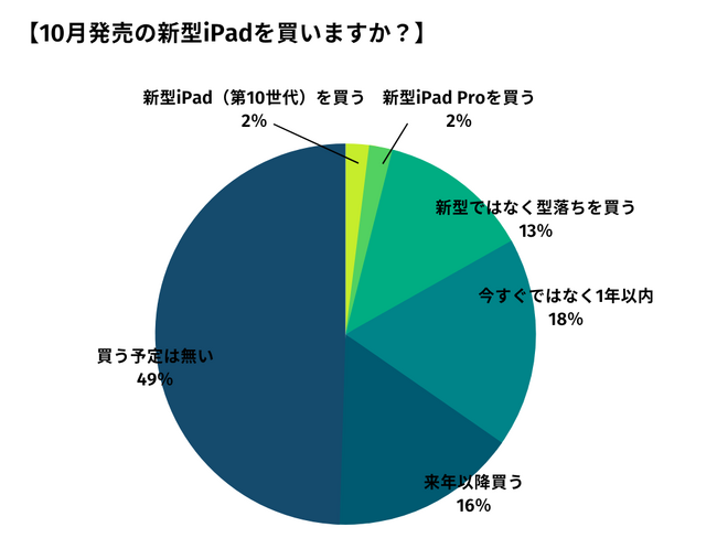 すぐに新型iPadを買う人は4%で、旧モデルの購入や買い控える方が46%であることがわかりました。