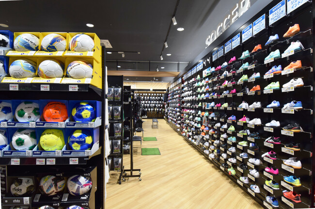 サッカーコーナではエントリーモデルからトップレンジ商品まで合計1,800点以上のスパイク・トレーニングシューズの品揃えを実現!ミズノ、アシックスといった国内ブランドや、ナイキ、アディダス、プーマなどの海外ブランドまで充実の品揃えです。