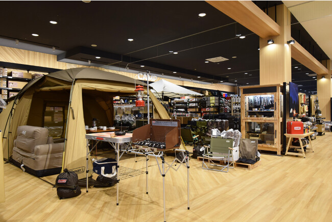 キャンプコーナーには大型テント、タープからファニチャー、キャリー、ライティングなどなど、キャンプライフを充実させる沢山のアイテム達が満載です。人気の「スノーピーク」コーナーには認定「スノーピークマイスター」が常駐し、商品の特徴や使用方法の説明はもちろん、キャンプのアドバイスなどもいたします。また店舗に接続する半屋外コーナーにはユーティリティースペースを設置、初心者のお客様に向けたテント設営方法のデモンストレーションなどを開催いたします。