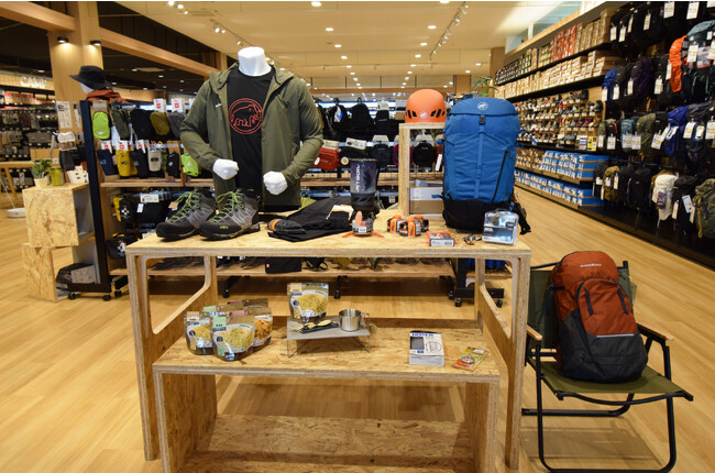 トレッキングコーナーではカジュアルテイストのアイテムから、ハイキング、山小屋泊のトレッキングまで幅広いニーズにお応えできるラインナップを取り揃えました。シューズやバックパックはもちろん、ヘッドライトやバーナー、クッカーなどのアイテム類も充実、山域によって入山時に推奨されるヘルメットまで豊富にご用意しております。