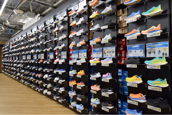 ランニングコーナーには3,000点以上のランニングシューズをご用意いたしました。普段履き用のデイリーユースやファンランナー含むエントリー層、本格的なエリート層まで対応できるラインナップとなります。
