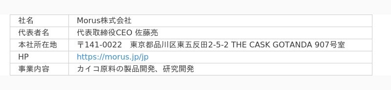 Morusは、日本の経済的発展を支えてきたカイコのバイオ原料の供給と研究開発を行う、研究開発型のベンチャー企業です。他の昆虫にない豊富な栄養成分を多く持ち原料としての可能性に満ちたカイコを、品種改良と量産によって複数産業へ原料として供給し「タンパク質危機」などの世界的課題を解決することを目的に創業いたしました。