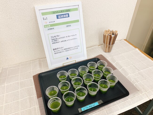 本プロジェクトでは、日本薬科大学と女子栄養大学の学生11名と、県内事業者が規格外野菜などを粉末化した『ぐるりこ(C)(※2)』を使用した新メニューの開発を行っています。本報告会では試食も行われ、星野光弘富士見市長をはじめとする出席者に評価を受けました。開発メニューは、2024年2月より県内の飲食店と富士見市小中学校の学校給食で提供されます。