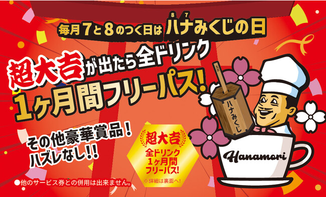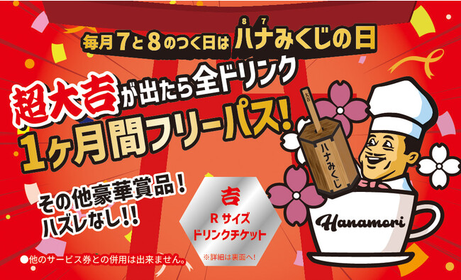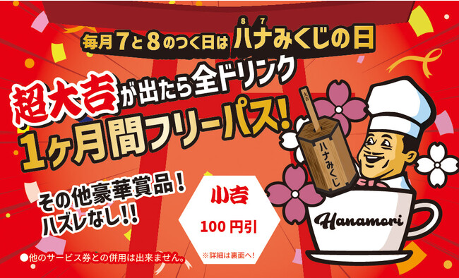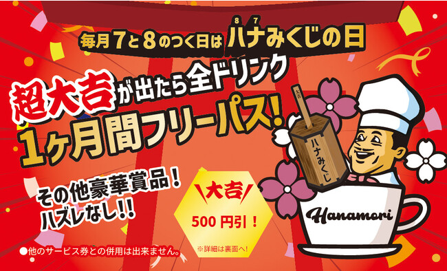 月7と8のつく日はハナみくじの日!超大吉が出たら全ドリンク1か月間フリーパス!!