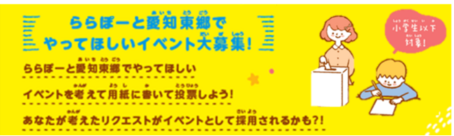 内 容 :投票用紙に『ららぽーと愛知東郷で実施して欲しいイベント』を自由に記入し、