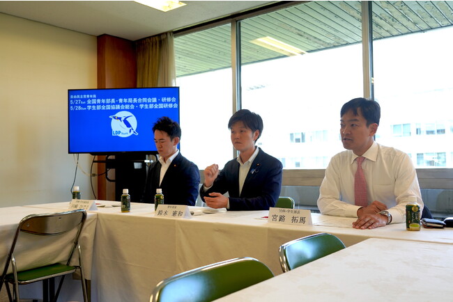 出席者:鈴木 憲和 青年局長、宮路 拓馬 青年局学生部長、川崎 ひでと 青年局学生副部長