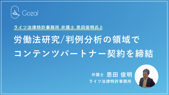 クラウド型給与計算チェックソフト「Gozal(ゴザル)」を運営する株式会社Gozal(本社:東京都目黒区、代表取締役:高谷 元悠)は、2023年2月よりライツ法律特許事務所(東京都中央区)所属の弁護士 恩田 俊明氏と社会保険労務士向けの労働法研究・判例解説におけるコンテンツパートナー契約を締結したことをお知らせいたします。