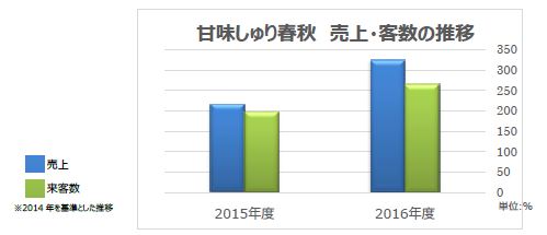 オープン以来の客数・売れ行きは、2014年4月-3月と対比して、昨年度は売上324%、客数265%と伸張し、本年1-3月も順調に推移しています。
