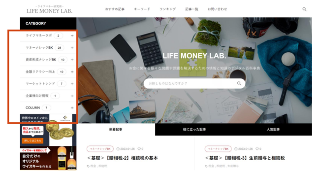情報発信サイトとして「LIFE MONEY LAB.」 のカテゴリーについて