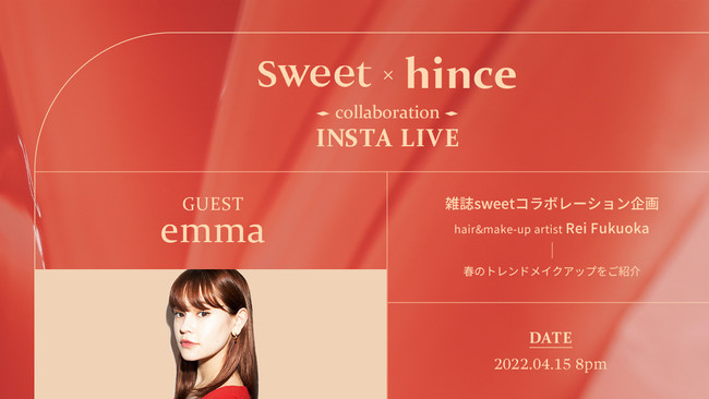 人気モデルのemmaさんご出演!hinceの新作アイテムで春メイクをご紹介 メイクアップブランドhinceとsweetがお送りするインスタライブを4月15日(金)20時から配信!