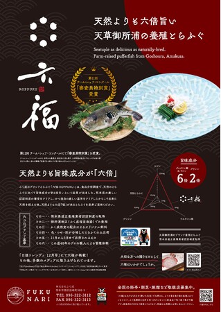 赤潮被害からの復活!天然よりも6倍の旨味成分を持つ、ブランドとらふぐ「六福(R)-ROPPUKU-」が11月1日より今季の販売を開始!