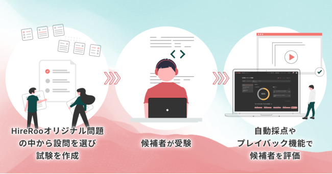 『HireRoo(ハイヤールー)』は、エンジニア採用時のコーディング試験サービスです。AIによる自動採点や回答過程を動画で再生できるプレイバック機能などで候補者のスキルを可視化し、採用ミスマッチを防ぎます。