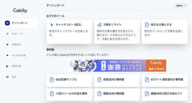 AIライティングアシスタントサービス「Catchy」はそんな謝罪フレーズの底上げとごめんなさいの気持ちを後押しします。