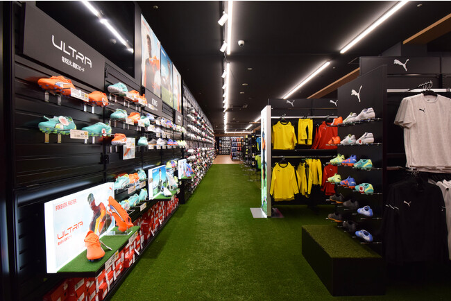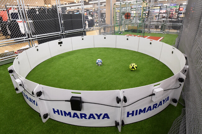 店内には、縦10m×横5mの大型ケージを設置、広い空間で野球のバットやテニスラケットなど様々な用具を存分に試すことが可能です。サッカープレイヤー注目の最新トレーニングマシン「ICON(アイコン)」を店舗に常設、FCバルセロナを始めとする世界各国のクラブチームや各国の代表チームで採用されているマシンを体感することが可能です。ケージ内には競技用の人工芝が敷かれており、各ブランドの最新スパイクの試履を実戦感覚でお試しいただけます。