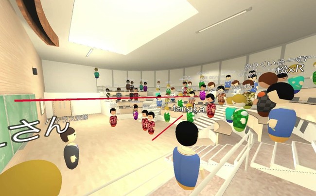 バーチャル空間への収容可能人数が少なく、社員が同じ空間に参加できないことが多い。その場合、やむをえずグループに分かれて別々の空間に参加したり、あぶれた人は映像中継で見るだけになってしまう、ということが多い。