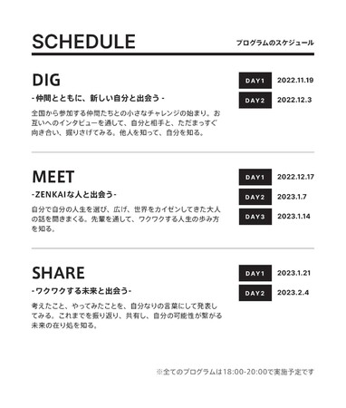 ※DIG Day1(2022.11.19), Day2(2022.12.3), SHARE Day2(2023.2.4)はメディア様も見学が可能です。他日程につきましては、下記担当者までご連絡ください。