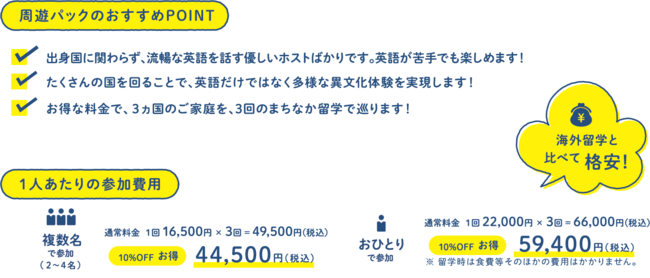 3カ国パックにすることで料金もお得!密度の濃い体験を格安でお試しできる限定企画ですので、お見逃しなく!
