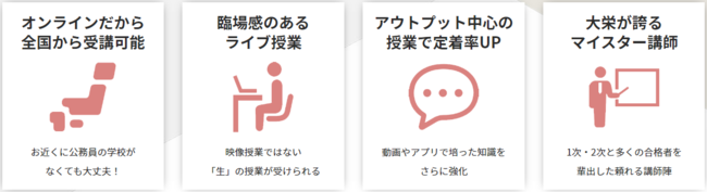 この度、資格スクールでは一部の校舎でしか受けられなかった「全日制(固定の時間割がある集団授業)」の授業を、オンラインで、どの場所からでも受講できる「公務員 初級オンライン全日制講座」をご用意しました。
