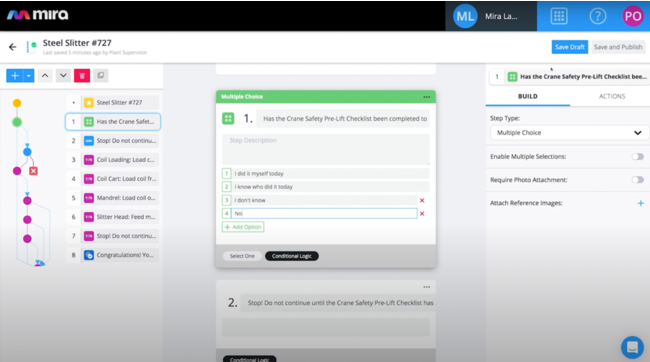 Mira Prismは工場作業の管理者等がウェブアプリ上で作業のワークフローや画像付きの手順書を簡単に作成することができ、ARゴーグル上でそれらを表示させることができます。工場の労働者はARゴーグルを通じて作業手順をハンズフリーで確認できるとともに、管理者とのリモートでのコミュニケーションを円滑に行うことで、工場作業の安全化と効率化を実現します。