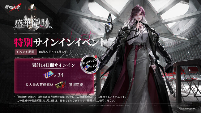 AISNO Gamesがパブリッシングを行うダウンロード無料のスマホゲーム、罪悪都市プリズン戦略RPG『無期迷途』において、10月27日(金)メンテナンス後より限定イベント「繁花」を開催することをお知らせいたします。