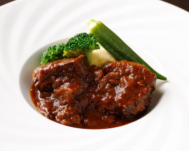 赤ワインでじっくり3時間煮込み、フォークで切れる柔らかさ。口に入れればたちまちとろける美味しさです。