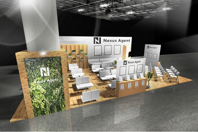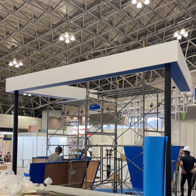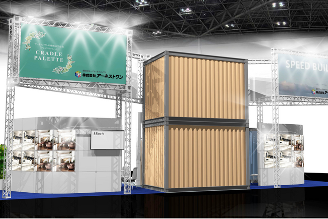 商品概要:展示会が終了すると解体破棄される木工ブースが多い中、基本の骨組みや資材は様々な展示会でも利用可能な共通資材(トラス)を使った、環境負荷の少ないサステナブルなブースです。