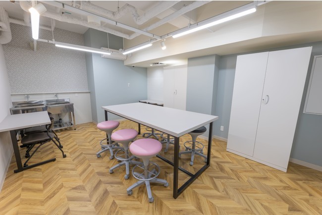 ワークルームは流し台があり、床はフロアタイルのため汚れや掃除がしやすい作業スペースです。