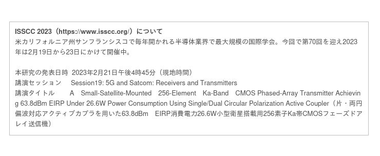 小型地球観測衛星に搭載するKa帯無線機の低消費電力化の共同研究成果をISSCCで発表