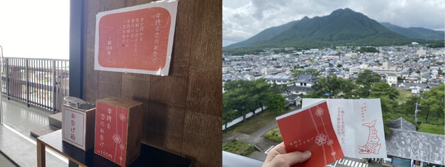 また、同様に島原城天守閣5階展望所にて「幸誇る恋のお告げ」も開始致します。こちらも1回100円で幸誇(しゃちほこ)様からの恋のお告げが授与されます。