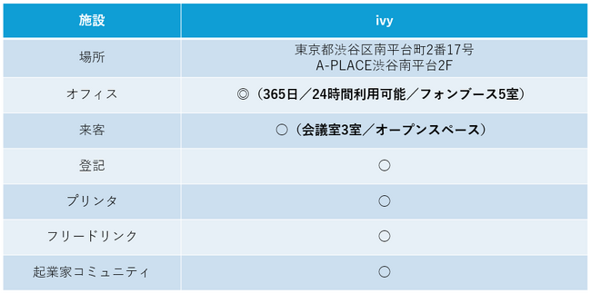 渋谷に新規開設したインキュベーションオフィス「ivy」を24時間365日利用可能。希望者には最大5,000万円の投資検討も