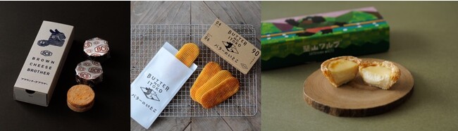 羽田空港第1ターミナル特選洋菓子館に初の常設店をオープン。牛乳からチーズを作る過程で大量に出るホエイ(乳清)を廃棄することなく、おいしく活用し新しい価値を生み出すために誕生したチーズ「ブラウンチーズ」を主役にしたお菓子です。甘ずっぱいブラウンチーズをガレッオブルトンヌでサンドした“サクッほろっ”食感の新感覚スイーツ。