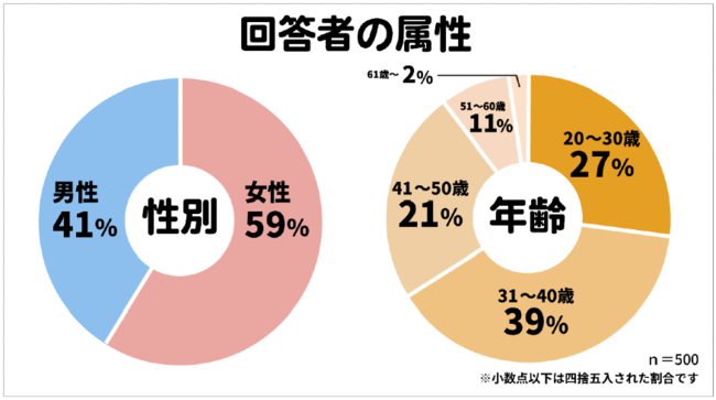 男性:41%、女性:59%と、女性の方が高い比率の回答となりました。年齢は31〜40歳が39%と最も多い結果に。