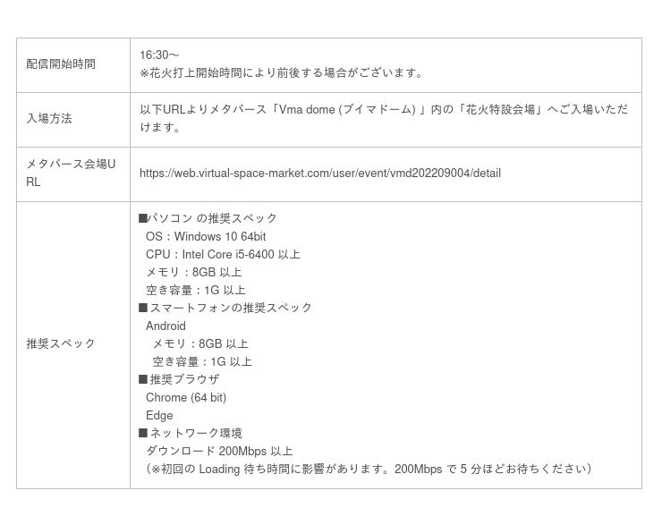 Vマ+が運営するメタバースプラットフォーム「Vma dome (ブイマドーム)」内に花火鑑賞に特化した「花火特設会場」を設置し、メタバース空間でも"ほかの観客と一緒に鑑賞"できる環境をご提供いたします。