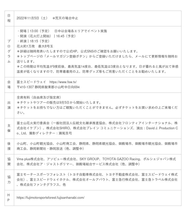 「FUJI MOTORSPORTS FOREST Fireworks by 富士山花火」について