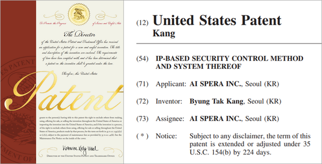 サイバー脅威インテリジェンス(Cyber Threat Intelligence、以下CTI)専門企業であるAI SPERA(エイアイスペラ、CEO姜 秉卓)が米国特許を取得しました。特許技術は攻撃対象領域管理自動化ソリューション「Criminal IP ASM」のコア技術である「IP基盤のセキュリティ管制方法及びそのシステム(IP-BASED SECURITY CONTROL METHOD AND SYSTEM THEREOF)」です。