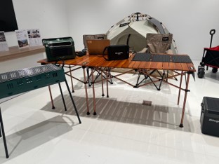 本イベントでは、「BougeRV JuiceGo」の最大の強みである持ち歩きのしやすさを訴求するため、アウトドアとカフェ作業シーンを想定し展示。新型コロナウイルスの流行を機に働き方は多く変わり、働く場所は限定されなくなりました。ワーケションという働きながらアウトドアや旅行を楽しむワークスタイルも確立されました。そういったシーンで特に活躍する、「BougeRV JuiceGo」を体験していただくためにアウトドアやカフェを連想させるシーンを作り新商品を体験していただきました。