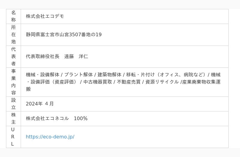 今般の資本参加を通じて、両社の経営資源を効果的に活用し、事業再編等に伴う施設・設備の解体・片付けから発生する「不要物」をより効率のよい静脈循環サービスとして、広範な顧客ニーズに応えていきます。また、エコデモの強みである「グリーンスチールによるスクラップの再資源化」の事業モデルを社会に広め、さまざまな業界におけるサーキュラーエコノミーの推進に努めていきます。